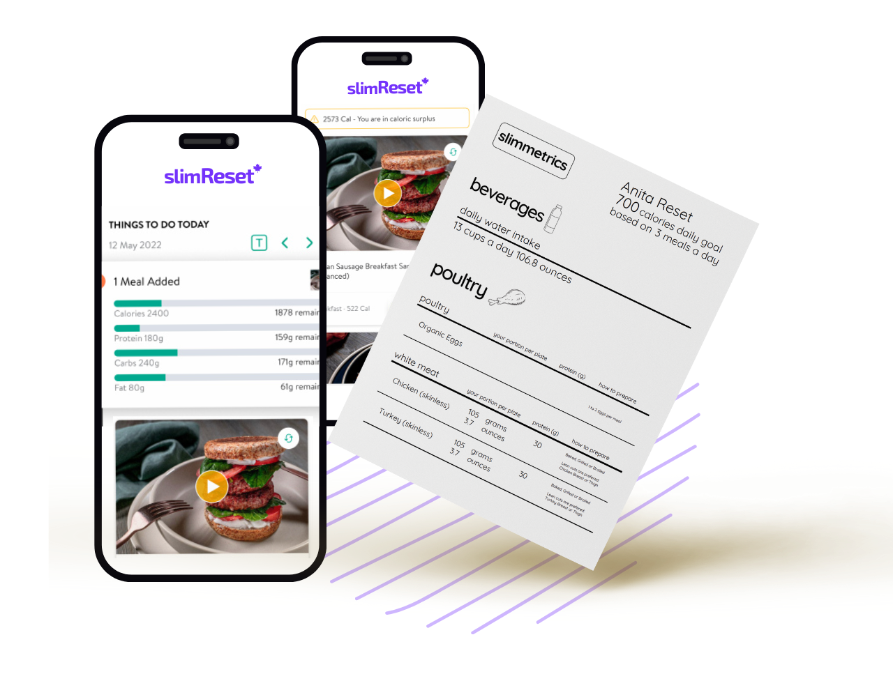 Based on your BMI and our unique 'gut slim' protocol, we'll calculate the correct amount of calories and protein portions for your unique slim journey.