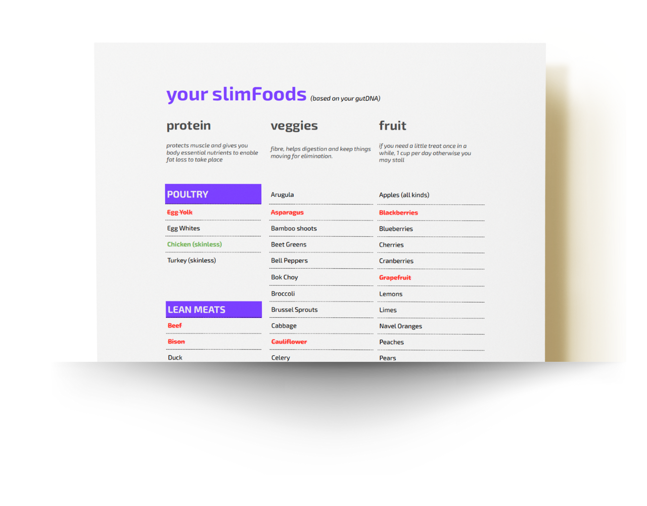 Your food guide is personaliized by your actual gut data from analysis for fat loss and stabilization.