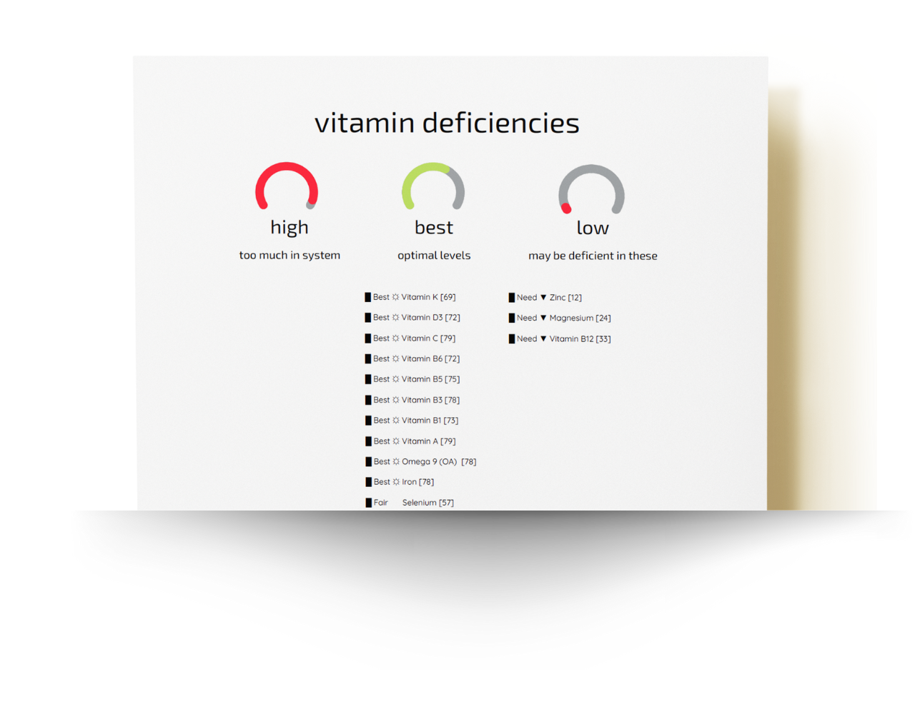 When inflammation occurs, it impairs vitamin absorption, potentially leading to deficiencies. But don't worry! This report identifies those deficiencies so we can address them directly.